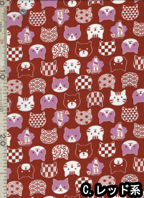 | 製品名: | 布和里・染布 シリーズ 1m単位切り売り 和柄 和調 スケアー プリント 和猫 5色あります |