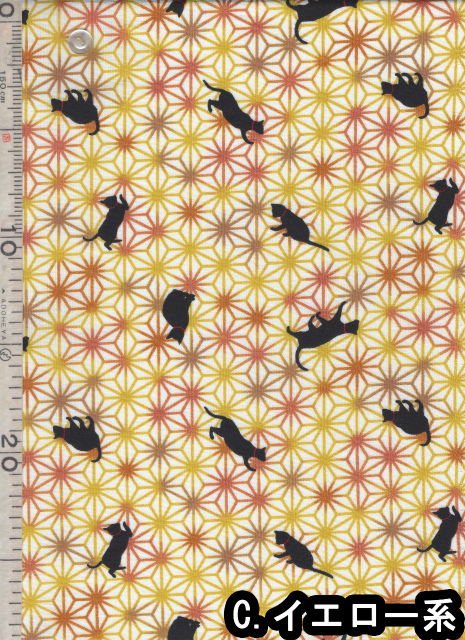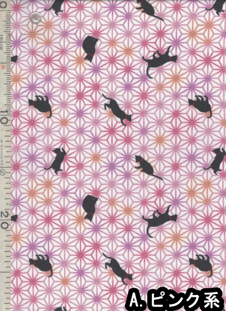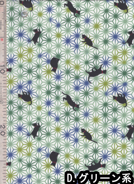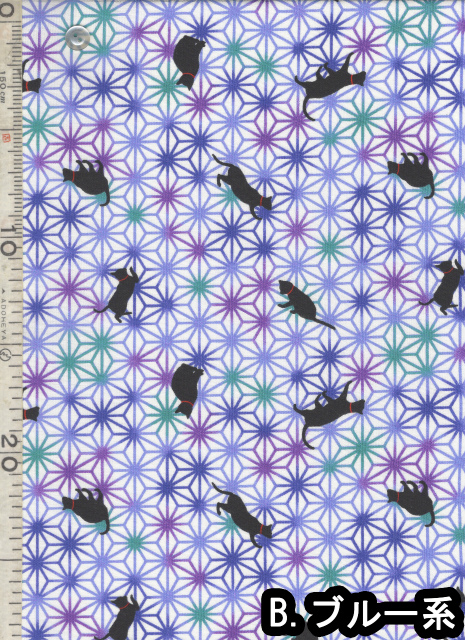 | 製品名: | 布和里・染布 シリーズ 1m単位切り売り 和柄 和調 スケアー プリント 黒猫と麻の葉 5色あります |