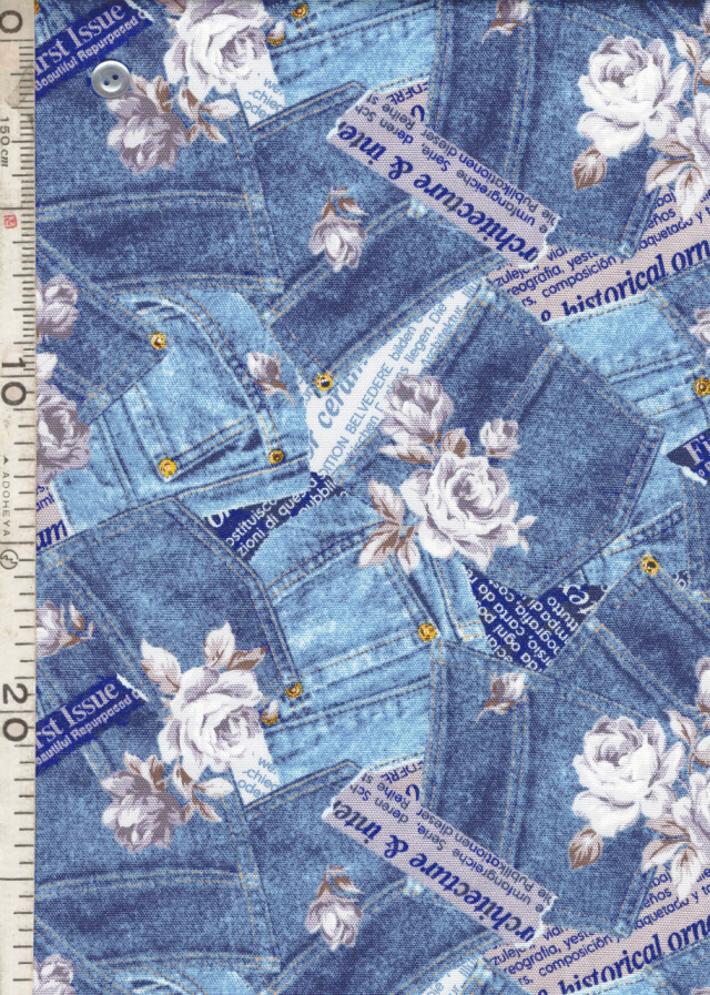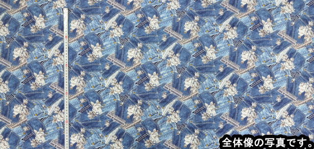 | 製品名: | 1m単位切り売り オックス プリント デニム風 バラ |