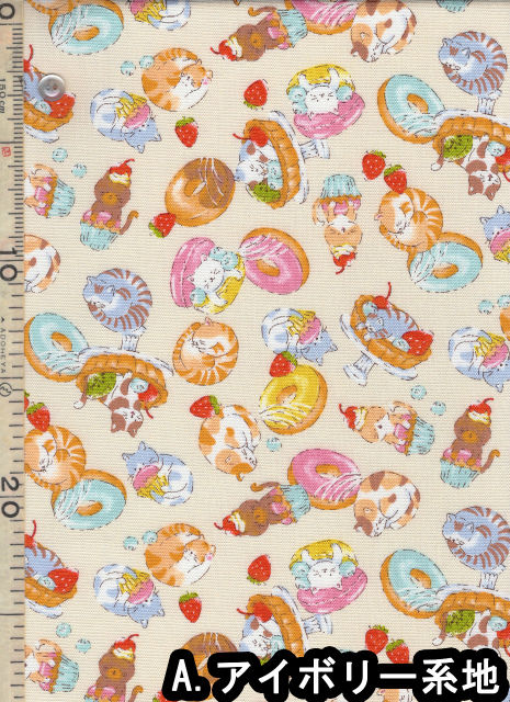 | 製品名: | 1m単位切り売り オックス プリント スイーツ キャット 2色あります |