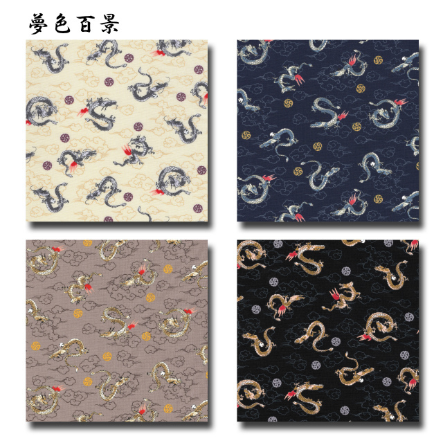 夢色百景 シリーズ 1m単位切り売り 和柄 和調プリント 2024年の干支は龍 4色あります 生地 布 布地 辰 干支 手芸 竜 龍 綿 シーチング シーチング生地 和柄生地 レトロ かっこいい